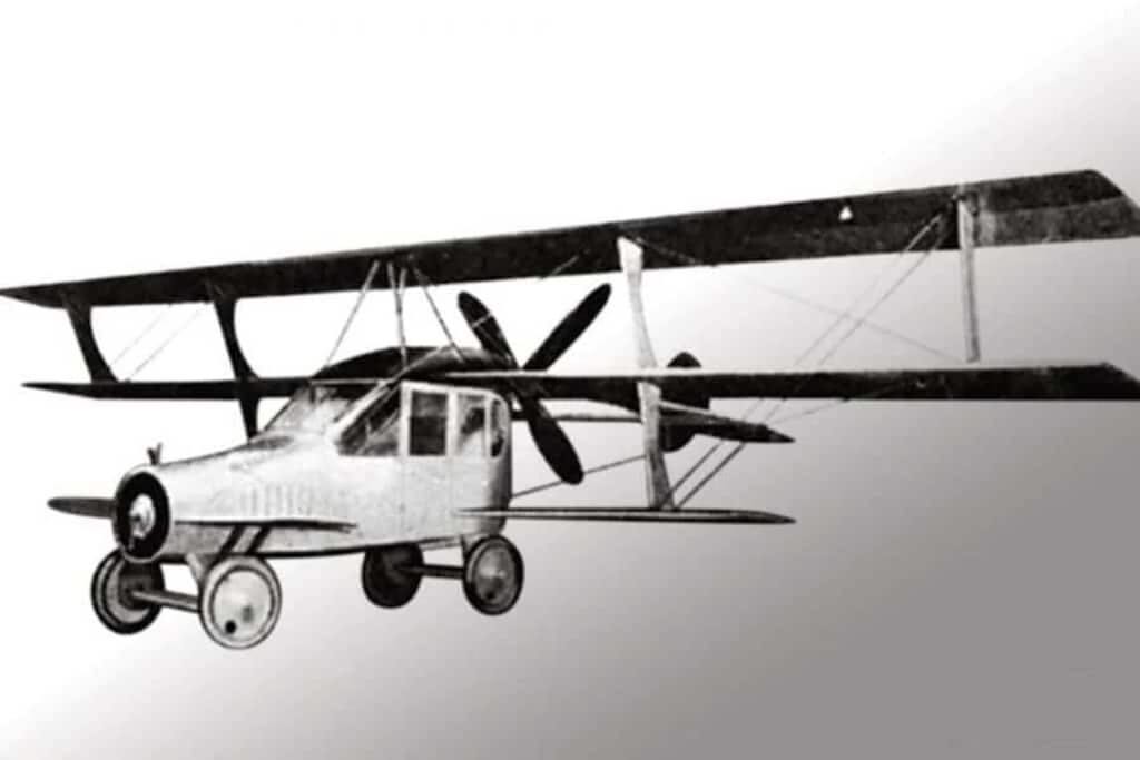 The 1917 Curtiss Autoplane, an early prototype combining a car body with biplane wings, represents a foundational concept in flying car development (The Detroit Bureau)