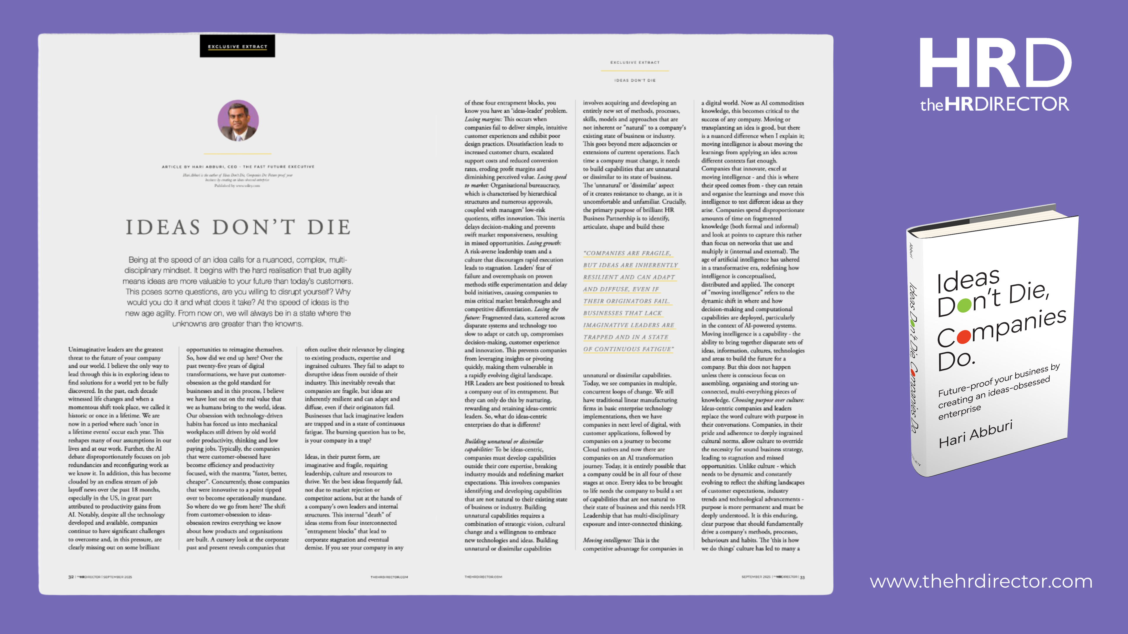 Every idea to be brought to life needs the company to build a set of capabilities that are not natural to their state of business. And this needs HR Leadership that has multi-disciplinary exposure, inter-connected thinking.