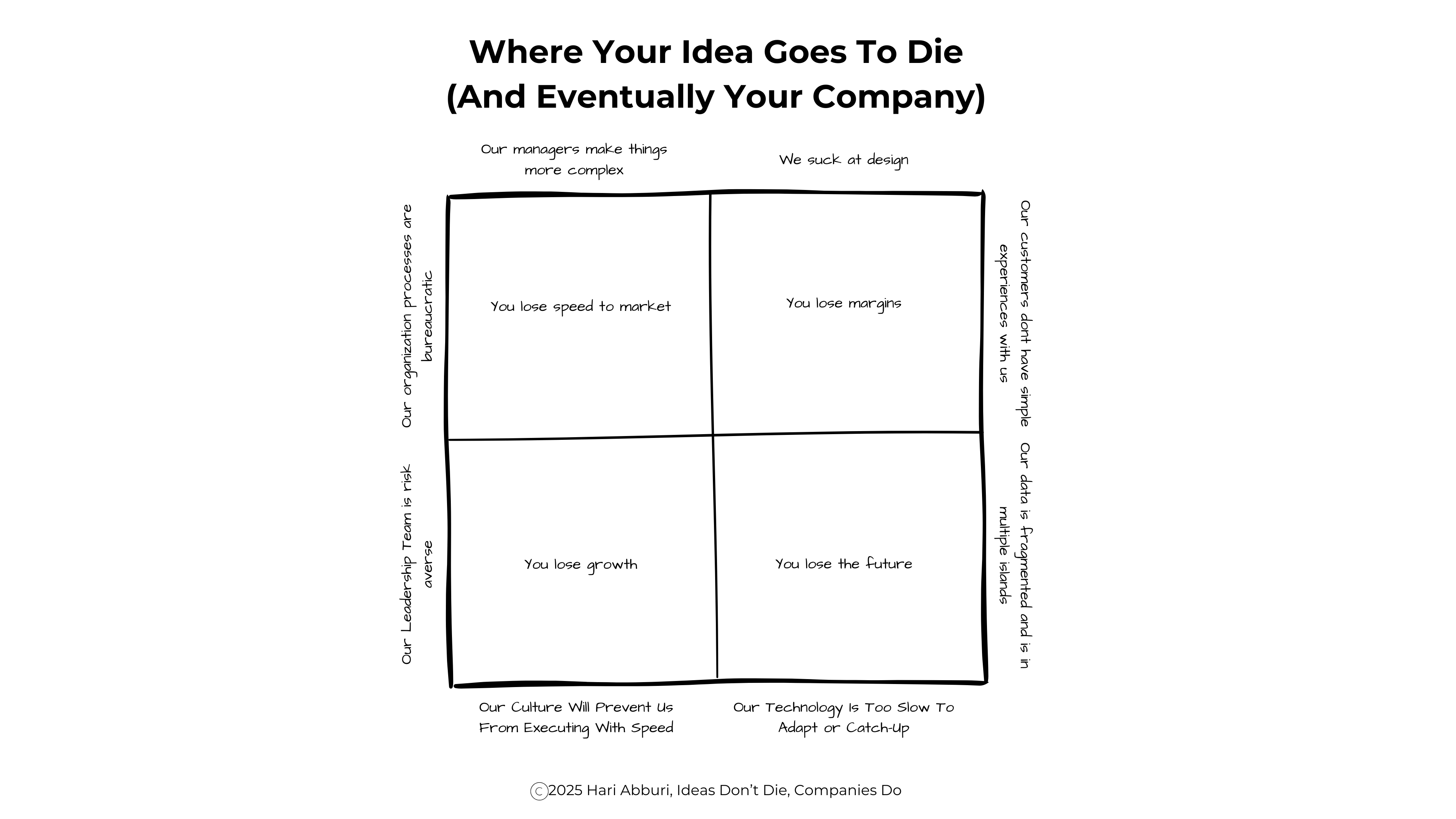Companies failing to embrace this shift—trapped by their internal "legacy as a liability"—risk obsolescence, as "ideas don't die, companies do". Overcoming these blocks requires prioritizing ideas and cultivating a nuanced, multidisciplinary mindset.