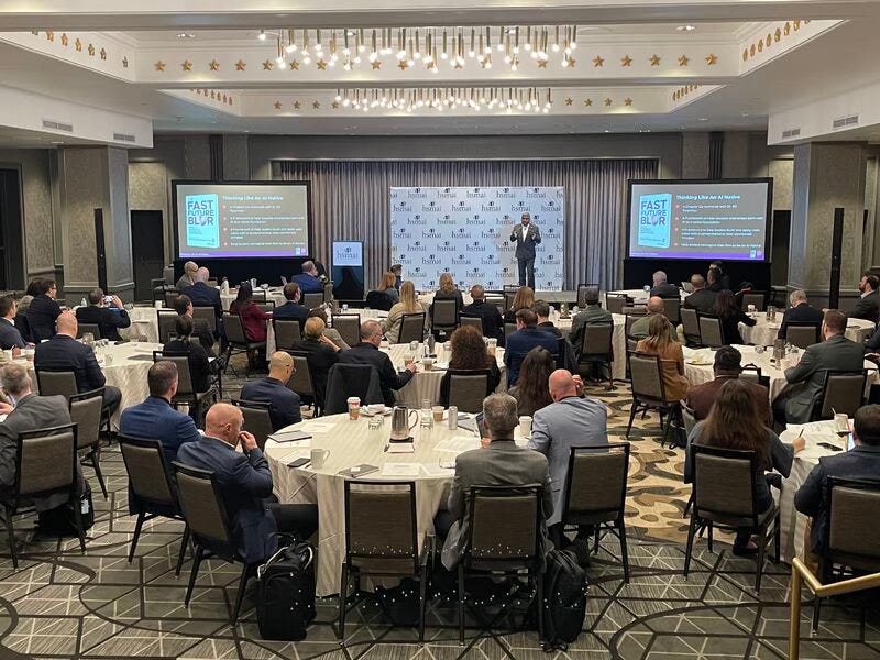 Hari Abburi introduced The Fast Future Blur book and the chapter, Thinking Like An AI Native to HSMAI Curate audience in D.C. this morning. Bringing this framework to hospitality industry leaders today and many other industries this year has been a fascinating process in itself.
