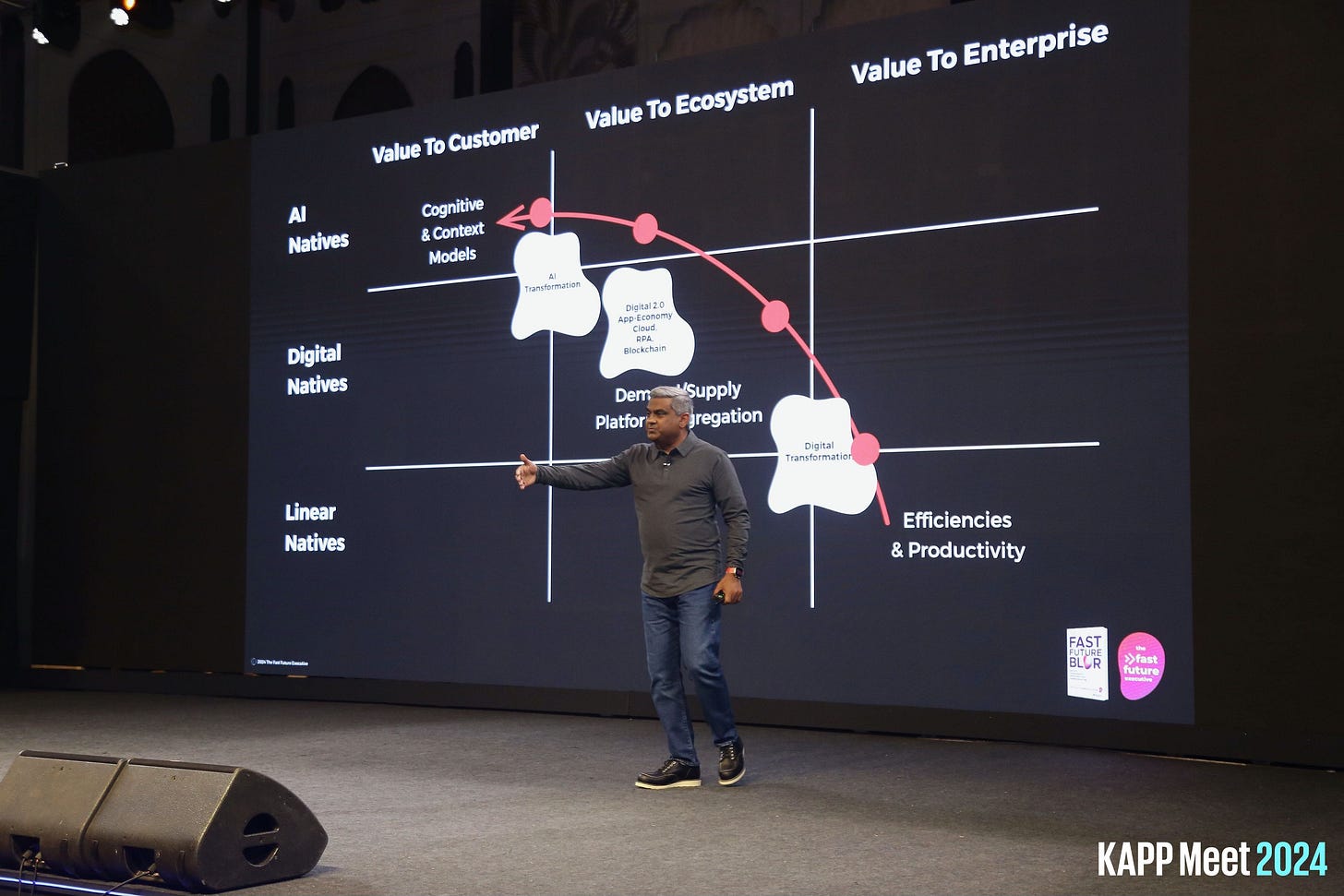 Hari Abburi delivered the opening keynote at KAPP 2024 Summit on ‘Thinking Like n AI Native’. He presented is co-authored chapter from the book The Fast Future Blur to take the audience into the five dimensions of companies that are born in the future as AI Natives. This talk explained the how these five dimensions create economic value from application of AI.